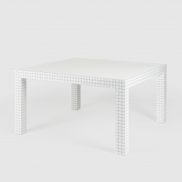 This iconic table is part of the Quaderna collection, designed by Superstudio in 1970. The project includes a series of experimental furnishings, composed of archetypical volumes covered with a laminate designed by the same collective for Abet Laminati: a geometric grid consisting of square modules measuring three centimeters each.