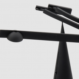 Tabla is a desk lamp designed by Mario Barbaglia and Marco Colombo. Its shapes are smooth and sculptural, with the flexible arm loosely balancing on a thin connection on the cone shaped base. The light can be modulated through three intensity settings. The object is in overall beautiful vintage condition with minor signs of age and a slightly loose adjustment mechanism.