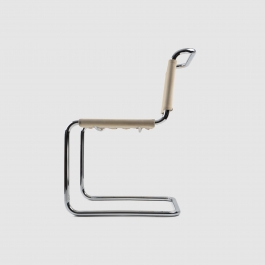 The very elegant B33 cantilever chair by Marcel Breuer is an icon of design history. This beautiful version was produced in the 1970s by Italian furniture producer Gavina and sourced directly from Italy. The off-white fabric is laced at the backrest and below the seat and is exceptionally clean for its age and of very high, sturdy quality.