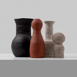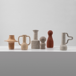 Accentuating the beauty of their natural material, each piece is handcrafted using the coil-technique and glazed on the inside only. The shape of each vessel is inspired by both the formal language of furniture found in the Various Objects collection as well as the intuitive creativity of children creating anarchic forms.